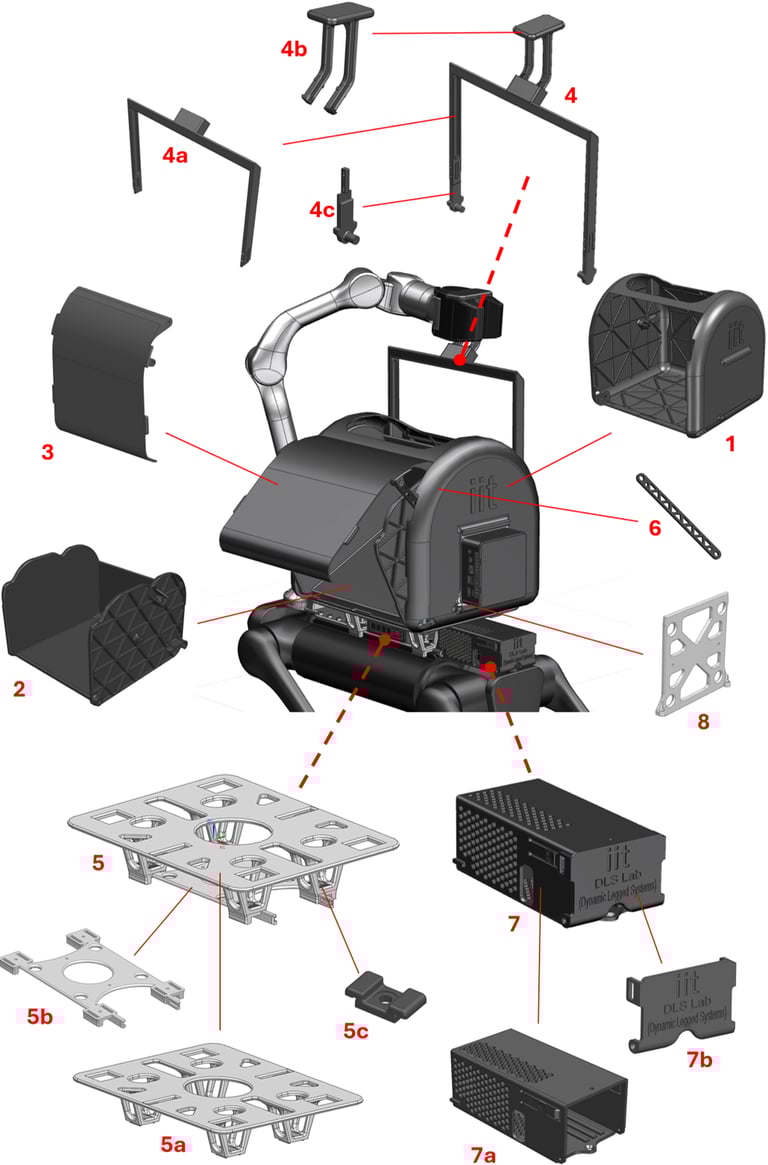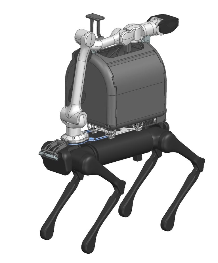 Unlike traditional wheeled solutions, this system leverages the mobility of legged robots, requiring a completely new approach to mechanism design and system integration .